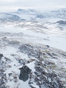 An amazing view amidst strong winds near the top of Mt. Nieras inside Stora Sjöfallet National Park.