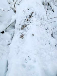 For one thing: It is winter, yet not really winter – both at the same time. I have worked with censusing large carnivores in Uppsala county since November. But with barely no snow, it has definitely been more of a challenge than usual. A large part of the field work is about trying to find scats of wolf. These scats are analyzed for their DNA to figure out which individual it is. And then we have to rely more on camera traps, especially for lynx. While there was snow, I did have the chance to follow one family group of lynx in western Uppsala county. It is always refreshing trying to follow these tracks as they like to go up logs and boulders. I’m glad I’ve practiced climbing.